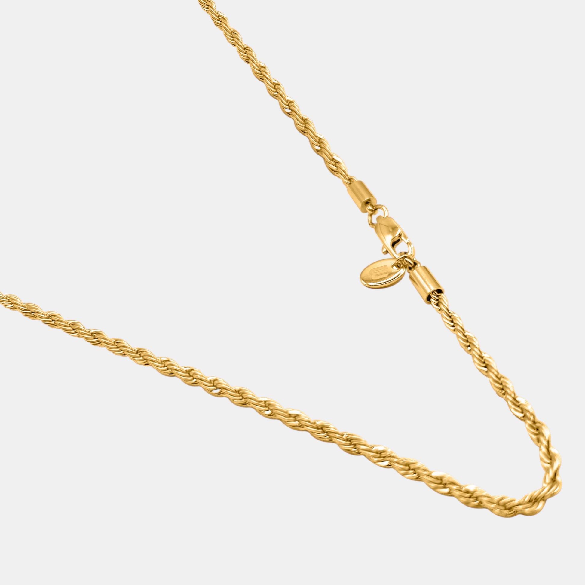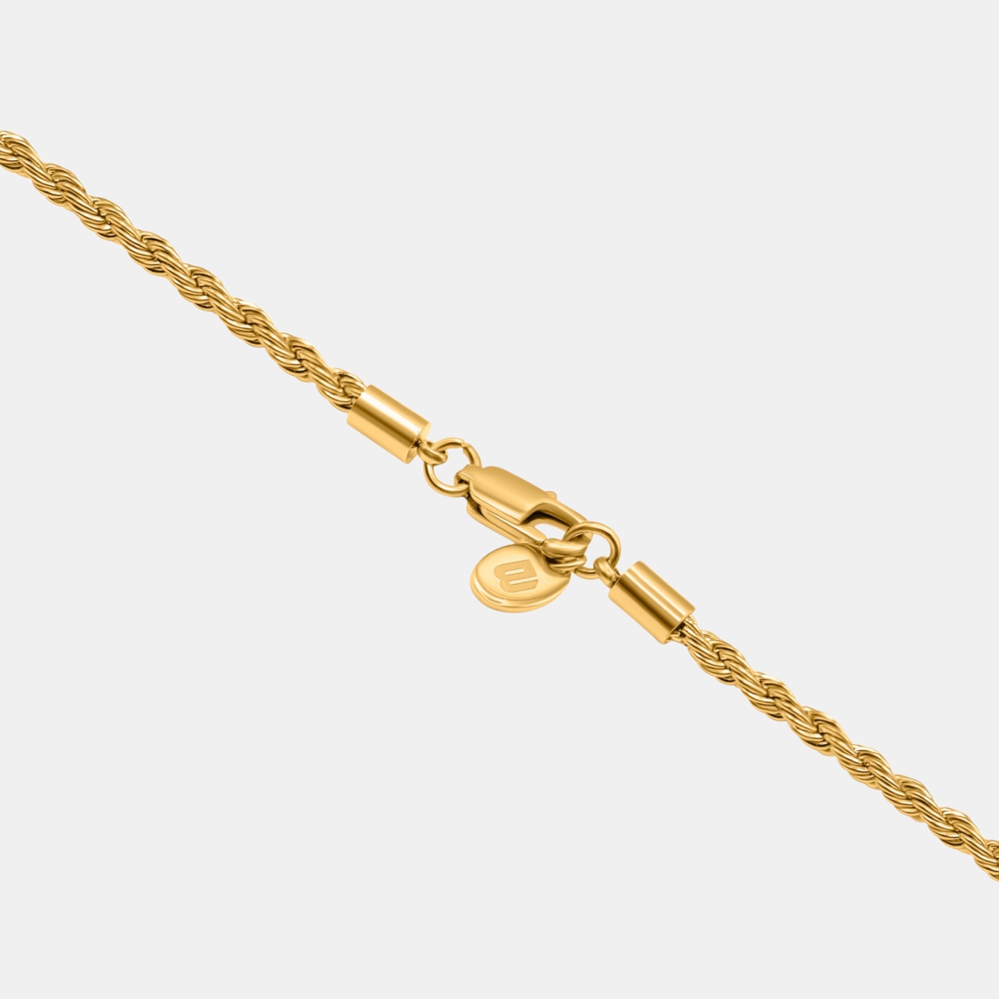 Sleek, subtle, and built to shine. The BLYNG 3MM Rope Chain in 18K gold features a lightweight twisted design and a secure lobster clasp — your go-to for everyday flex.