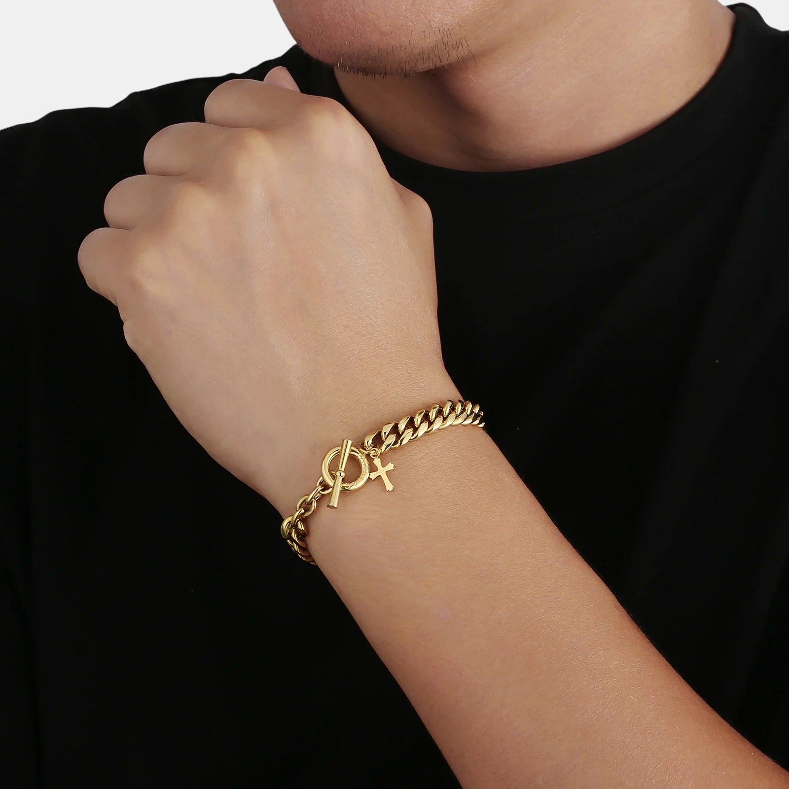 Faith meets flex. The BLYNG 8MM Cuban Crucifix Bracelet in 18K gold features bold links and a detailed crucifix charm — made to stand out with purpose and presence.