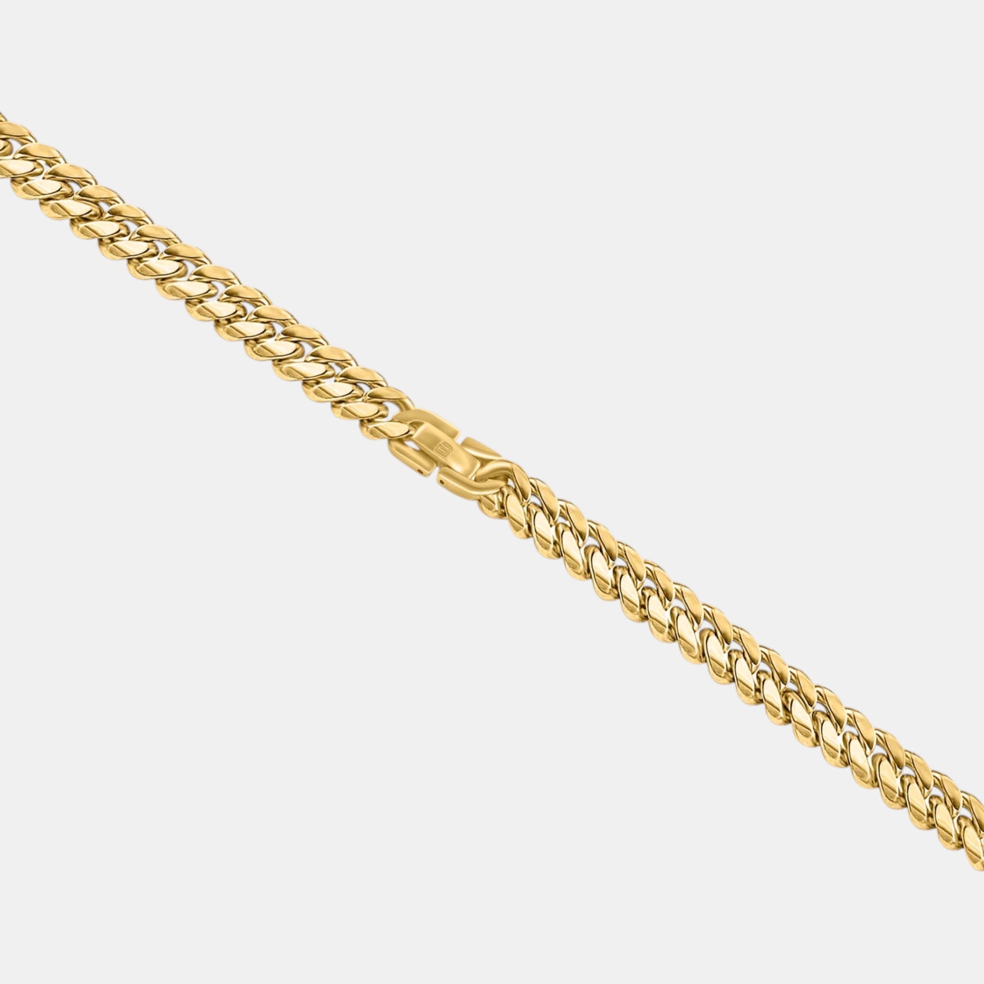 Bold but balanced. The BLYNG 9MM Cuban Chain in 18K gold delivers clean shine with strong links and a fold-over clasp for a secure, seamless fit — everyday weight, standout look.