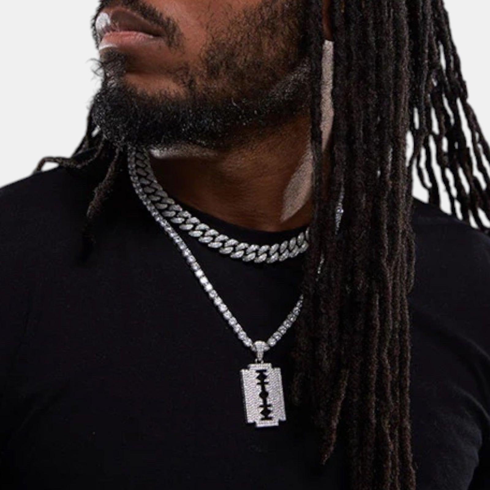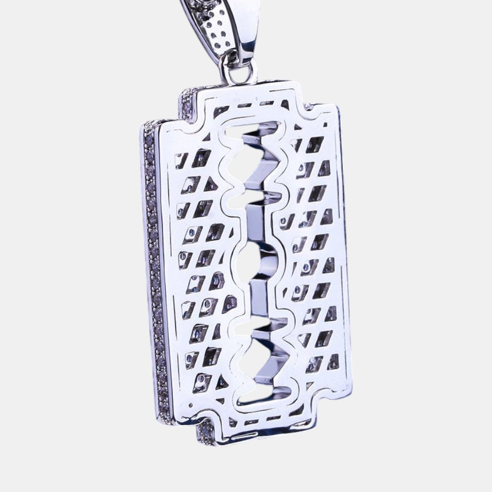 Iced Razor Blade Pendant | Silver