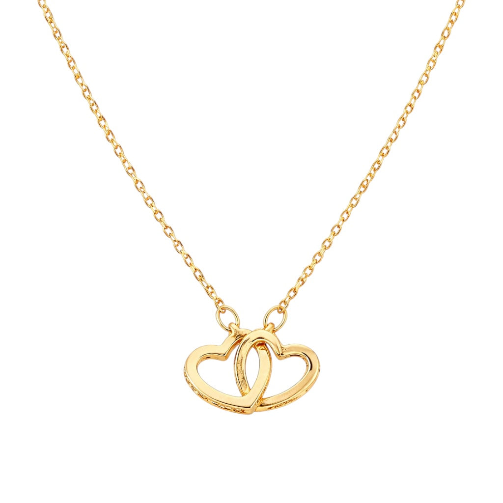 Romantic and elegant, the Noelle Heart Necklace is designed to add a meaningful touch to any outfit. Featuring a double heart-shaped pendant adorned with sparkling cubic zirconia on a slim gold-plated stainless steel chain, this piece is perfect for layering or wearing alone for everyday elegance or special occasions.